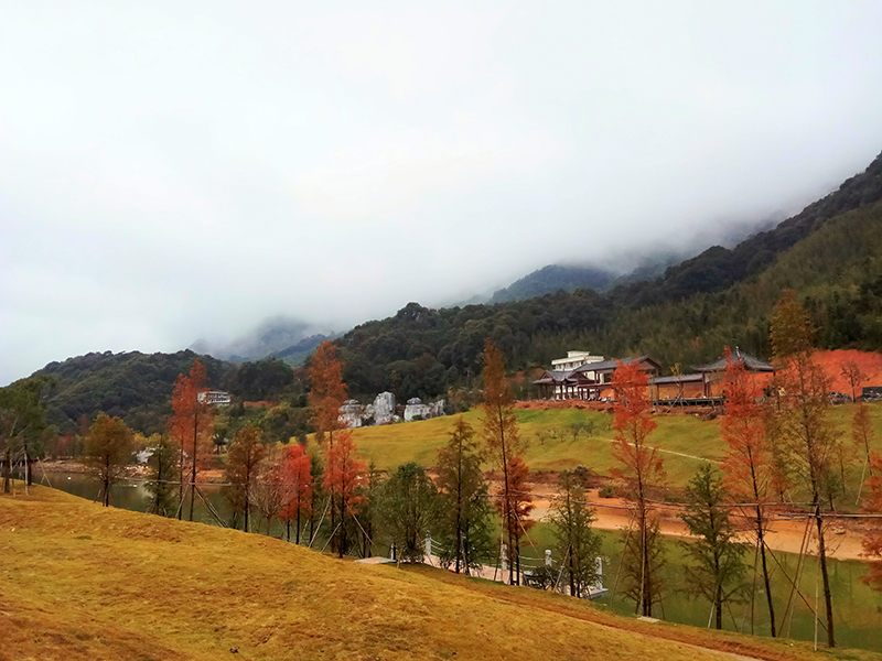 到了园区,略作休息,我们就迫不及待的登上最高的观景亭。放眼望去,初秋远处的山坡上颜色较夏日更加丰富了,红黄蓝绿交杂在一起,零星点缀着一些白色、黄色的山菊花,酸枣果实点缀着的金黄。